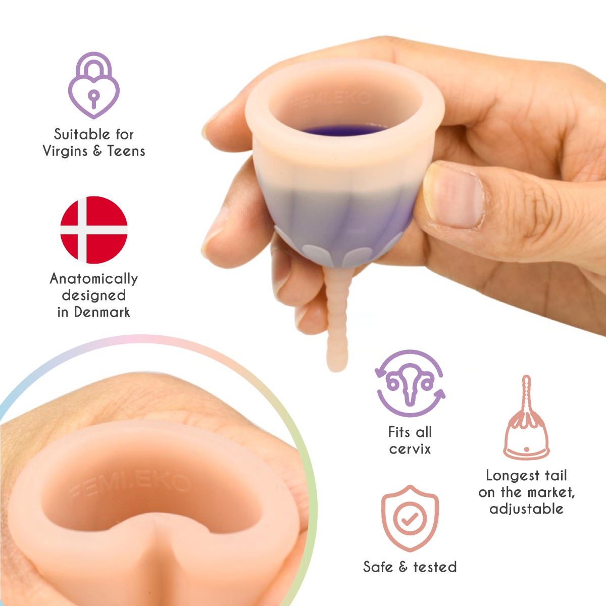 Mit der Femi.Eko® Menstruationstasse TEEN (Größe XS) können junge Mädchen und Teenager eine sichere und gesunde Menstruationserfahrung machen und gleichzeitig ihre Gesundheit und ihr Selbstvertrauen im Intimbereich unterstützen. Perfekt für einen aktiven Lebensstil, ohne sich über Flecken oder Unbehagen Gedanken machen zu müssen. 🌸