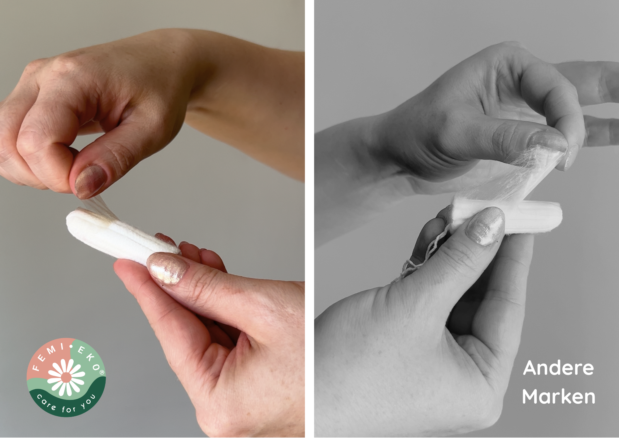Femi.Eko® tampons are made exclusively from organic cotton – without plastic, perfume or synthetic fibers – and developed with a focus on transparency, quality and responsible material choices.